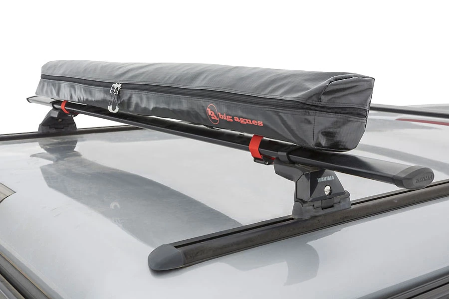 Sehr genial und aussergewöhnlich ist die Möglichkeit, das tarp bei vorhandenen Gepäckträgerschienen darauf montiert mitzunehmen, und vor Ort nur das tarp herauszuziehen, auf die gewünschte Art aufzubauen und fertig. Der nahtlose und damit dichte Übergang zum Fahrzeug wird durch die Halterung auf dem Dach gesichert. Fast schon wie eine Markise…