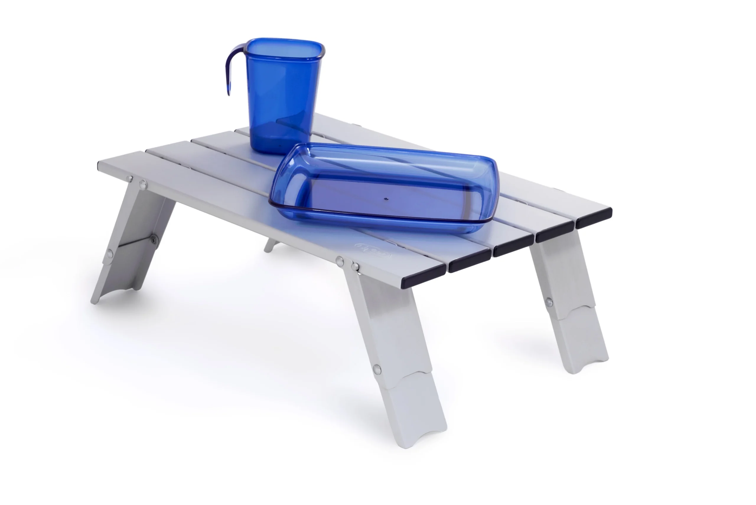 Ein Falt-Tisch für minimalistische Camps. Ideal für Bootsfahrer, Motorradfahrer, Radtourer. Wie an den Bildern mit Deko als Relation für Grösseneinschätzung zu sehen, kein Tisch für ein Familien-Camp… Dafür sehr kleines Packmaß und leicht. Verhindert, dass Essen z.B. auf dem Boden oder balancierend auf den Knien zubereitet werden muss, kann auch als Untersatz oder Abstellmöglichkeit für Geschirr, Lampen, aber auch Kocher dienen – sehen Sie z.B. im Bild und im unten verlinkten Video den Einsatz zusammen mit einem Firebox Hobo.