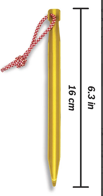 Die goldfarbene Eloxierung macht den V-Peg leicht erkennbar, und dank der angebrachten Schlaufe lässt er sich einfach ohne Werkzeug aus dem Boden ziehen. Die Schlaufe kann natürlich auch zur Zeltleinenfixierung genutzt werden.