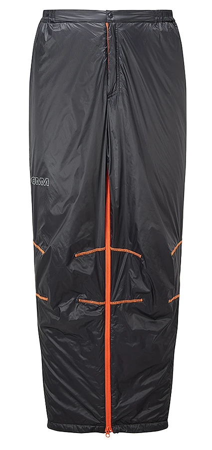 Dies ist eine (Über-)Hose für den Einsatz in Biwaks, Camps, Hütten bei Touren im Kalten. Es ist angenehmer, dann eine andere Hose als die Tourenhose zu tragen, zumal die vom Isoliervermögen nicht auf „Ruhe-Zustand“ ausgelegt ist. Die Hose kann dann eben als leichte, warme Hose solo getragen zu werden, oder sie kann, auch bei längeren Pausen auf Tour, über die Tourenhose gezogen werden. Dazu kann man die Beine mittels Seiten-Reissverschlüssen zum leichten und schnellen Anziehen öffnen – dann kann man sogar beim An- und Ausziehen normale Wanderschuhe anbehalten.
