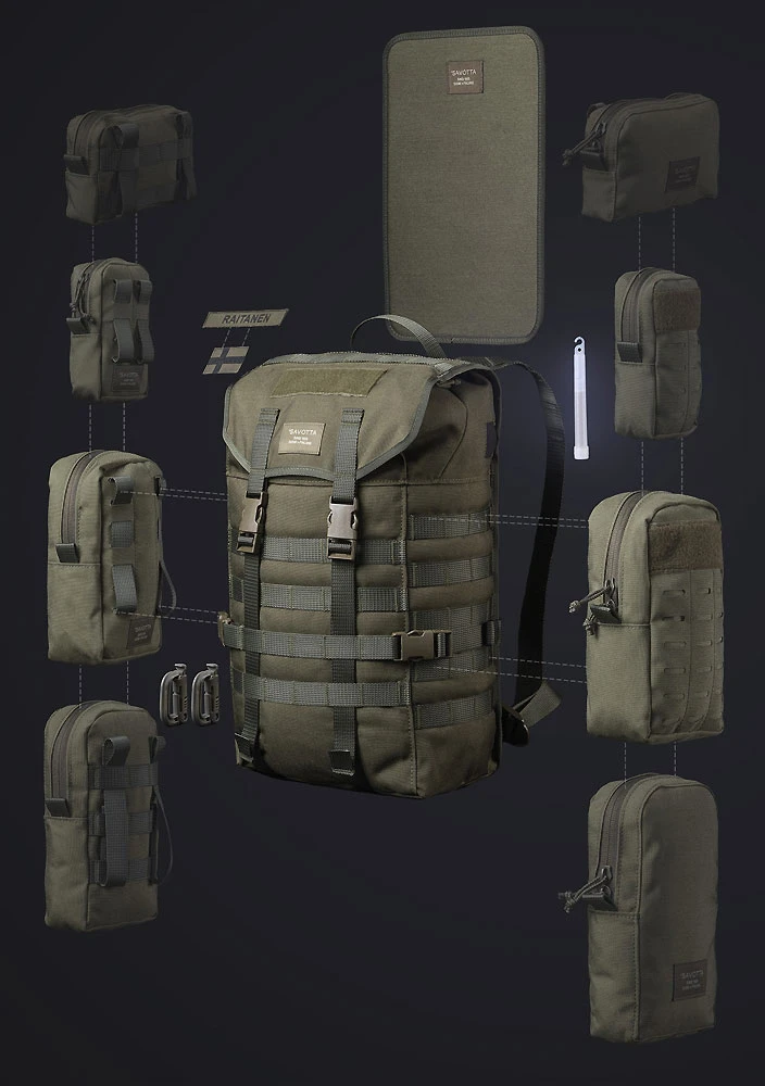 Dies ist der kleinste Pack der Jäger-Serie von Savotta, mit einem Volumen von ca. 20l. Nur auf die Grösse zu schauen ist bei diesem Pack aber ein Fehler – der Jäger S ist ein voll ausgestatteter, dank des PALS Modular-System mit optionalen Zusatztaschen variabel vergrösserbarer vollwertiger Rucksack für harte Einsätze.